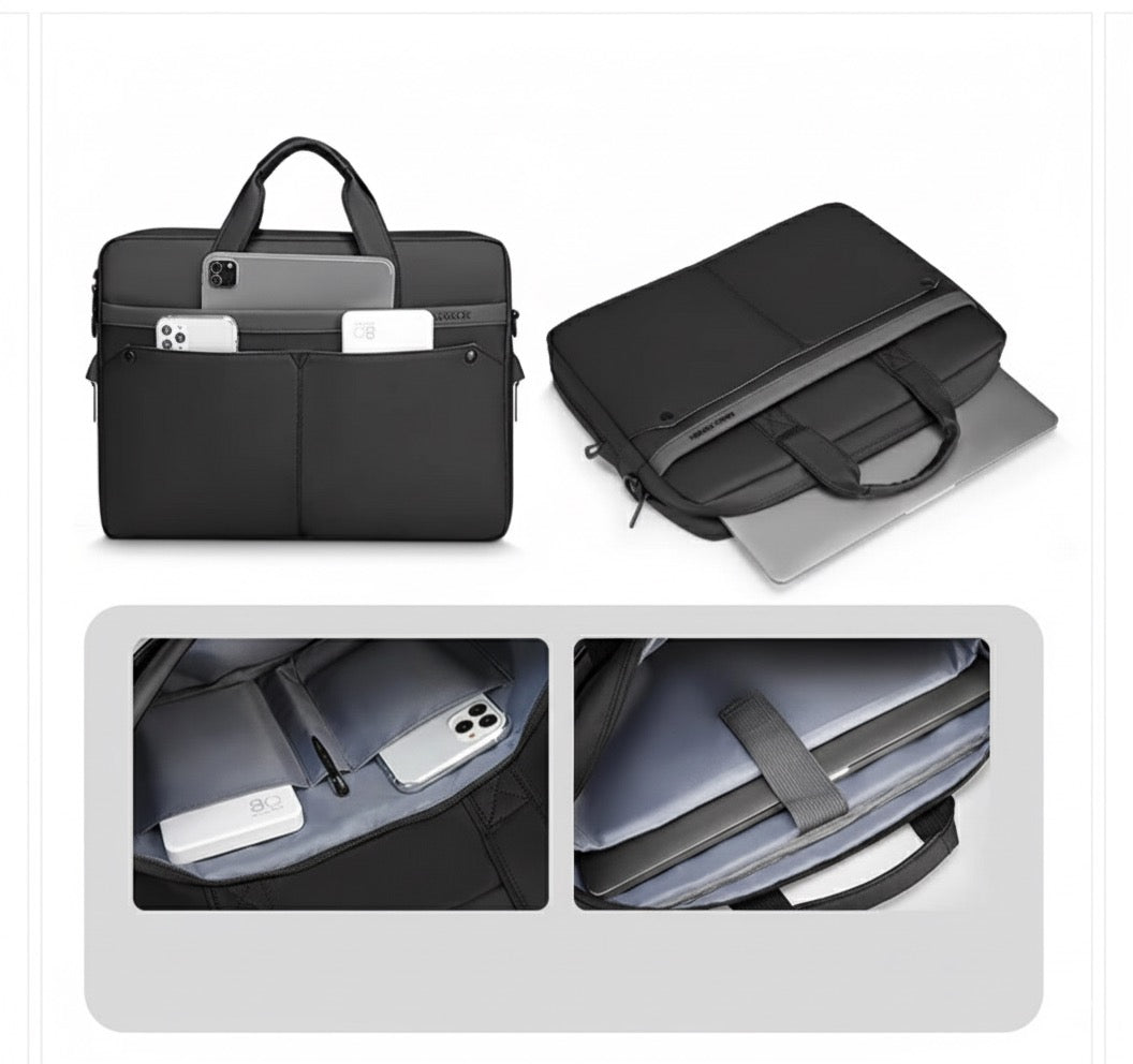 Disponible en deux formats pratiques – 14 pouces et 15,6 pouces – il offre un espace adapté pour accueillir votre ordinateur portable, vos documents, vos accessoires numériques et vos objets personnels, sans nuire à votre confort ni à votre silhouette. La bandoulière ajustable garantit un port ergonomique, tandis que les compartiments intelligemment organisés facilitent l'accès rapide à vos essentiels.